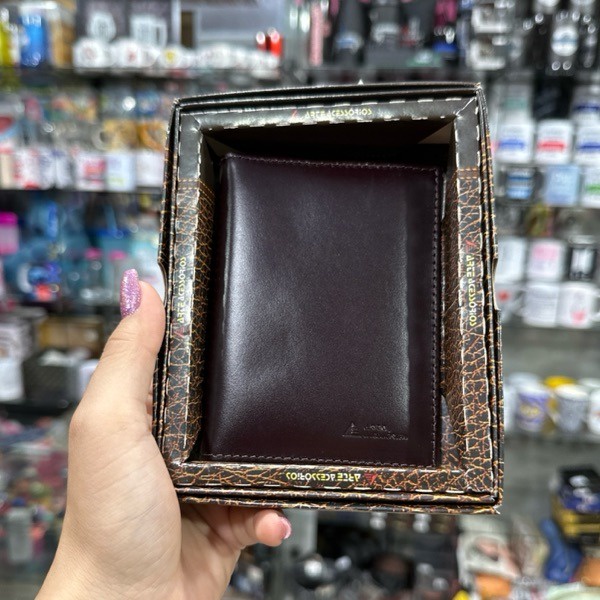 Carteira de couro masculina, com espaço para documentos e cartões . Pequena, fina e de alta qualidade.
