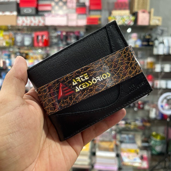 Carteira de couro masculina, com espaço para documentos e cartões . Pequena, fina e de alta qualidade.