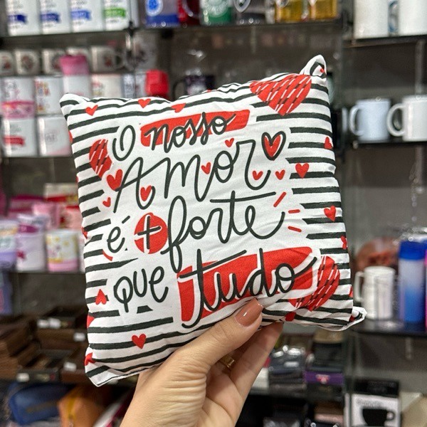 ALMOFADA 20x20CM O NOSSO AMOR É MAIS FORTE QUE TUDO