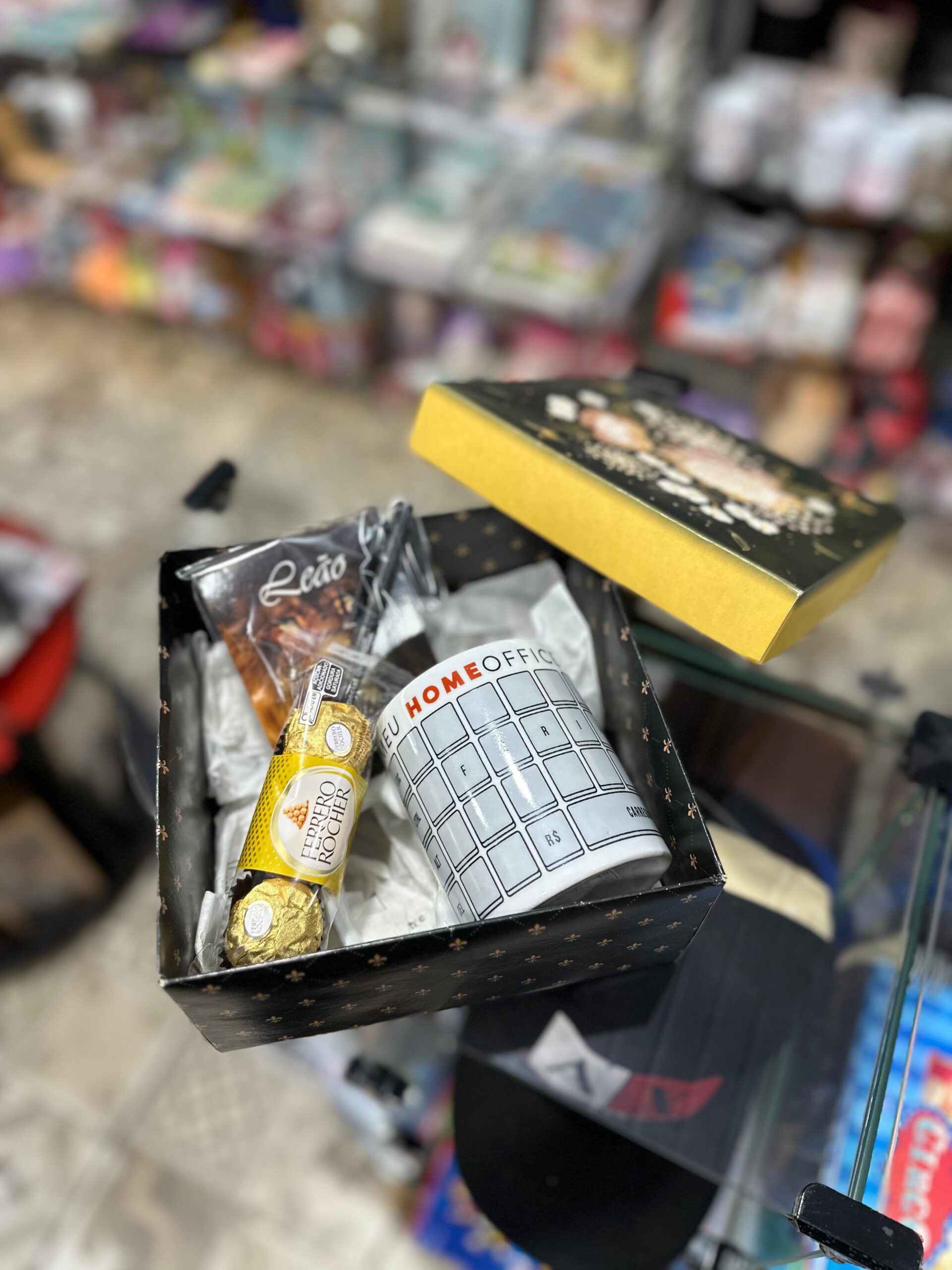 CAIXA COM CANECA HOME OFFICE + FERRERO + BLOCO DE NOTAS COM CANETA