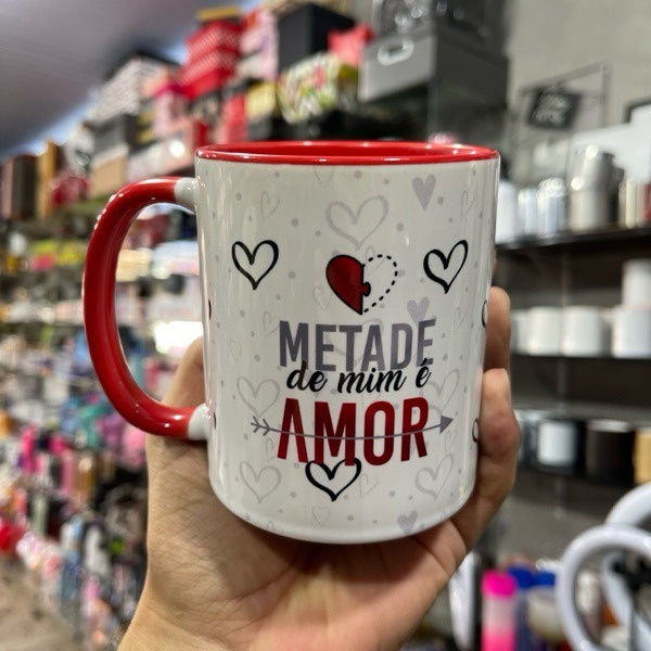 Seja o primeiro a avaliar “CANECA PORCELANA METADE DE MIM É AMOR”