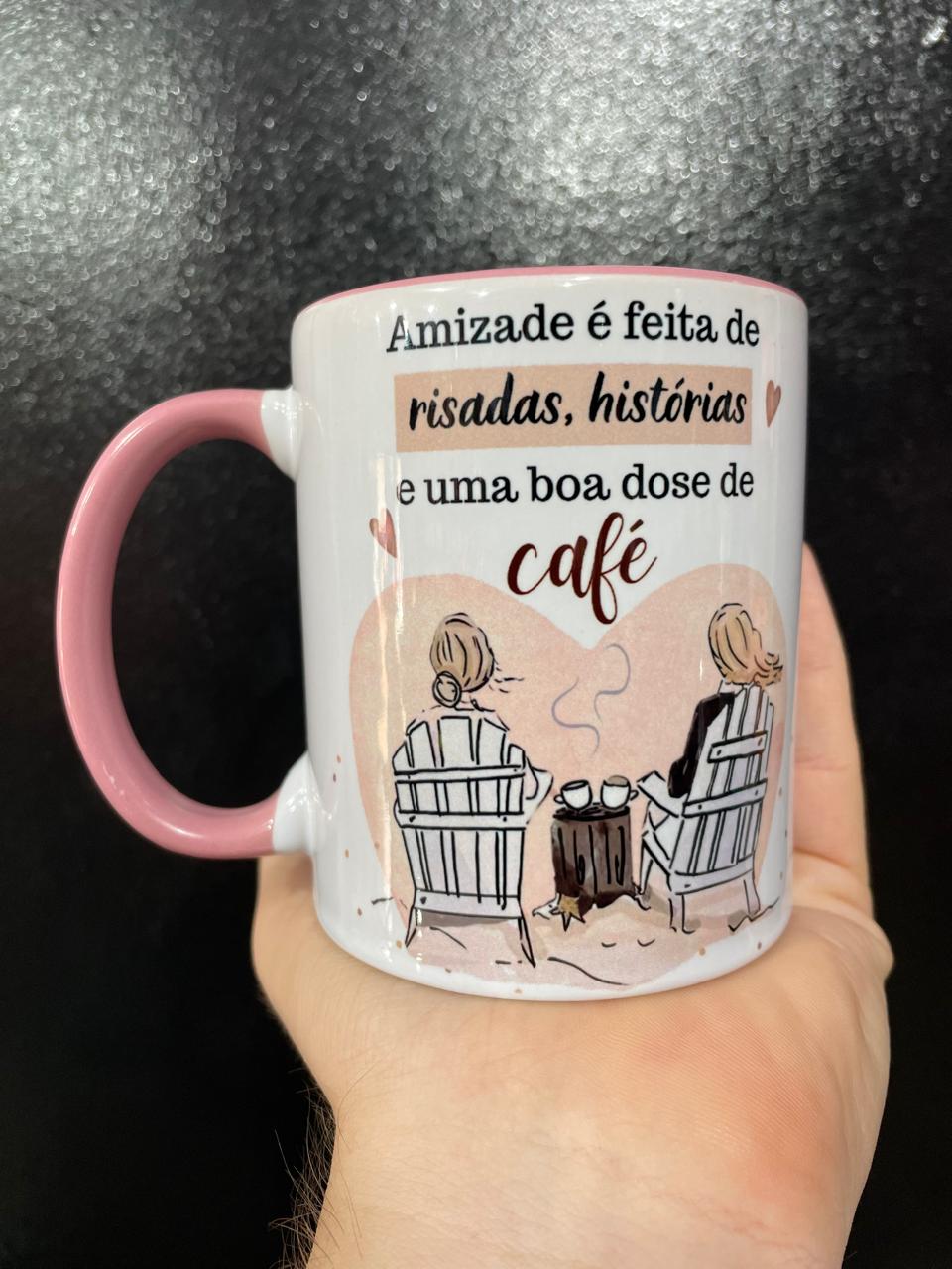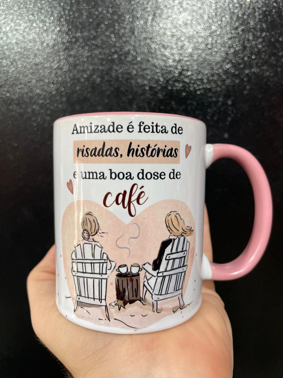 CANECA ROSA AMIZADE É FEITA DE RISADAS, HISTÓRIAS