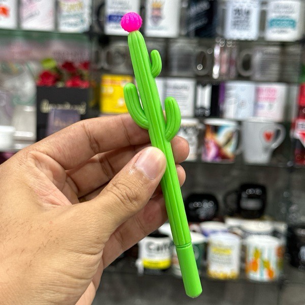 CANETA CACTO VERDE COM ROSA
