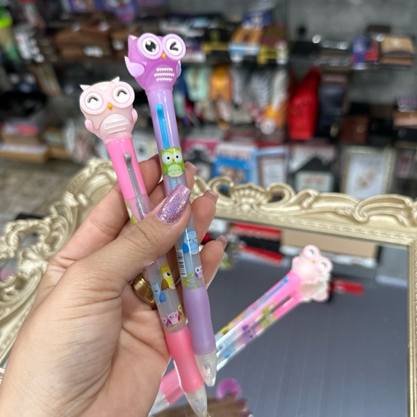 CANETA CORUJA | NA MESMA CANETA TEM A PONTA AZUL E A PRETA