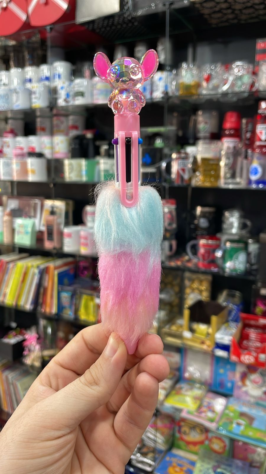 CANETA STITCH 6 CORES ROSA COM POMPOM