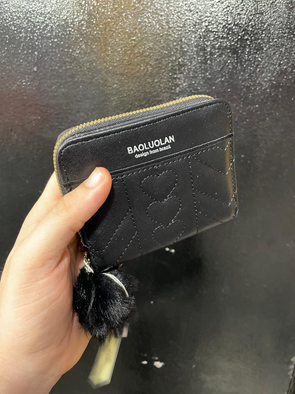 CARTEIRA FEMININA PRETO COM POMPOM BAOLUOLAN
