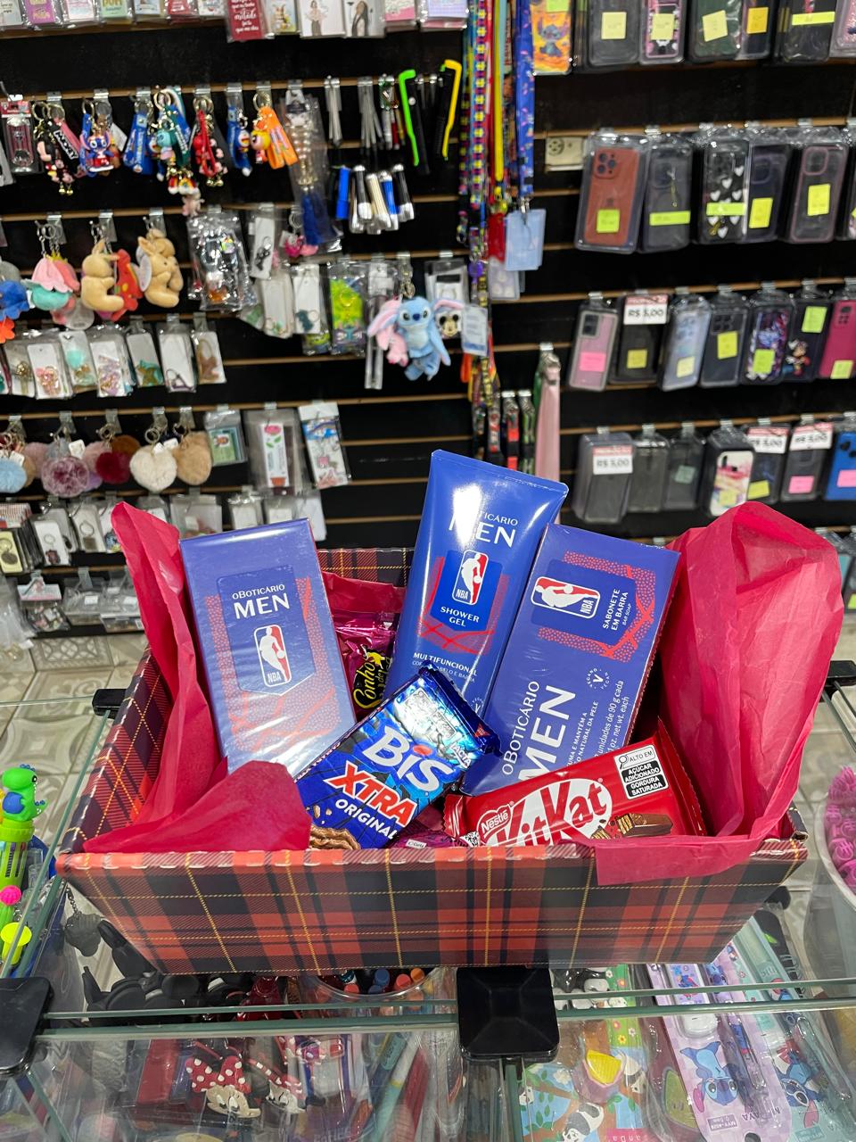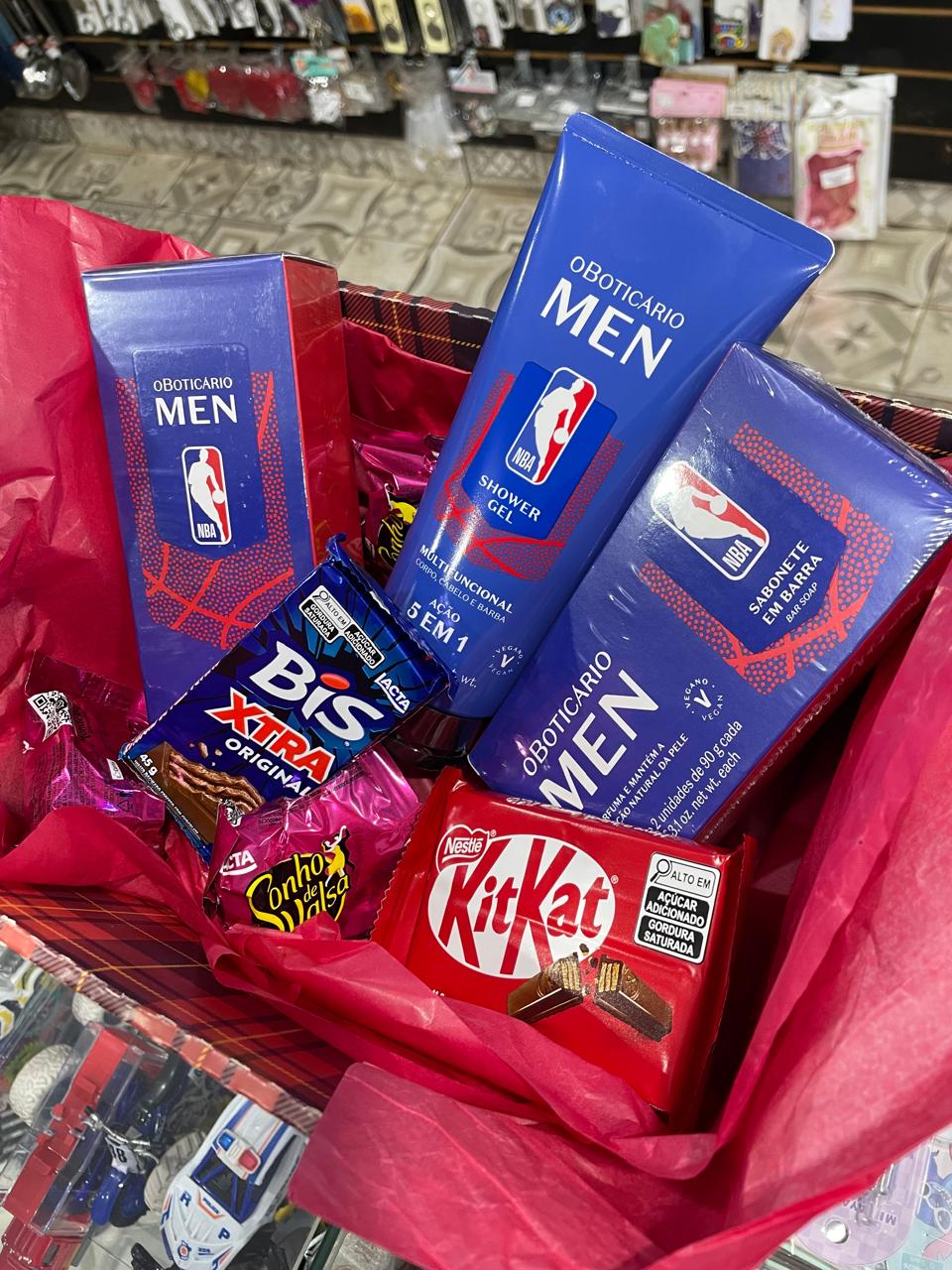 CESTA MEN NBA COM COLÔNIA, SABONETE, SHOWER GEL E CHOCOLATES