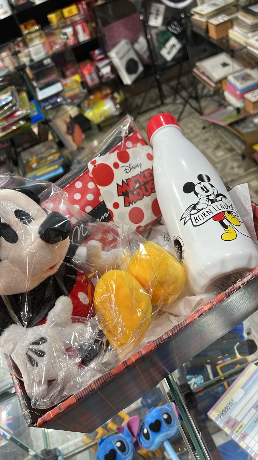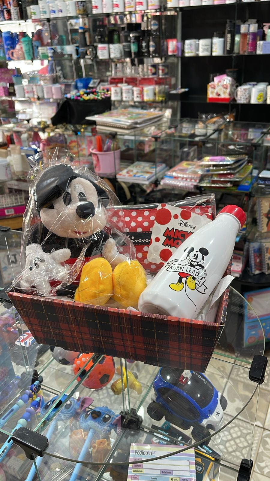 CESTA PELÚCIA MICKEY + GARRAFA MICKEY + NECESSAIRE MINNIE