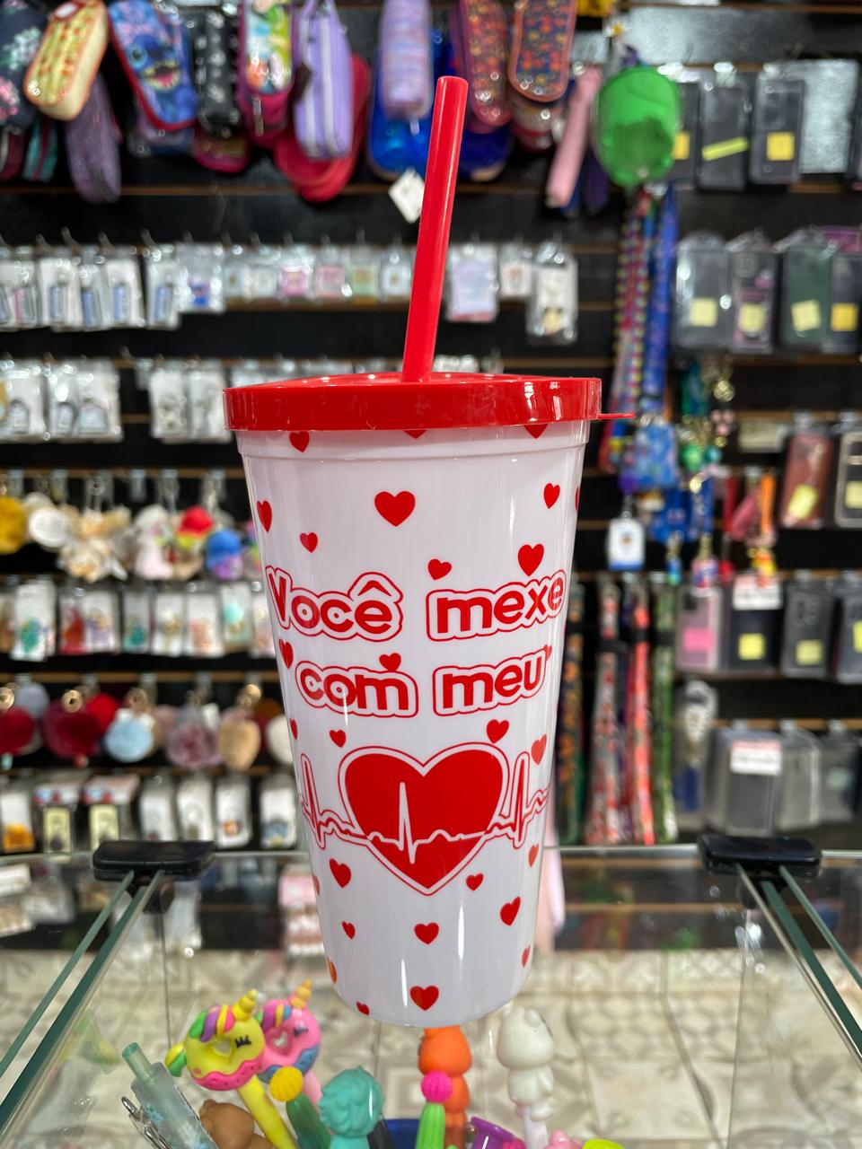 COPO COM CANUDO BRANCO VOCÊ MEXE COM MEU CORAÇÃO 600ML