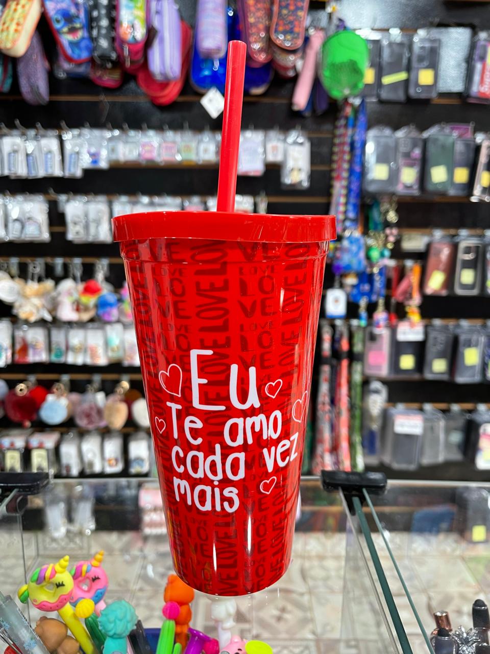 COPO COM CANUDO VERMELHO EU TE AMO CADA VEZ MAIS 600ML
