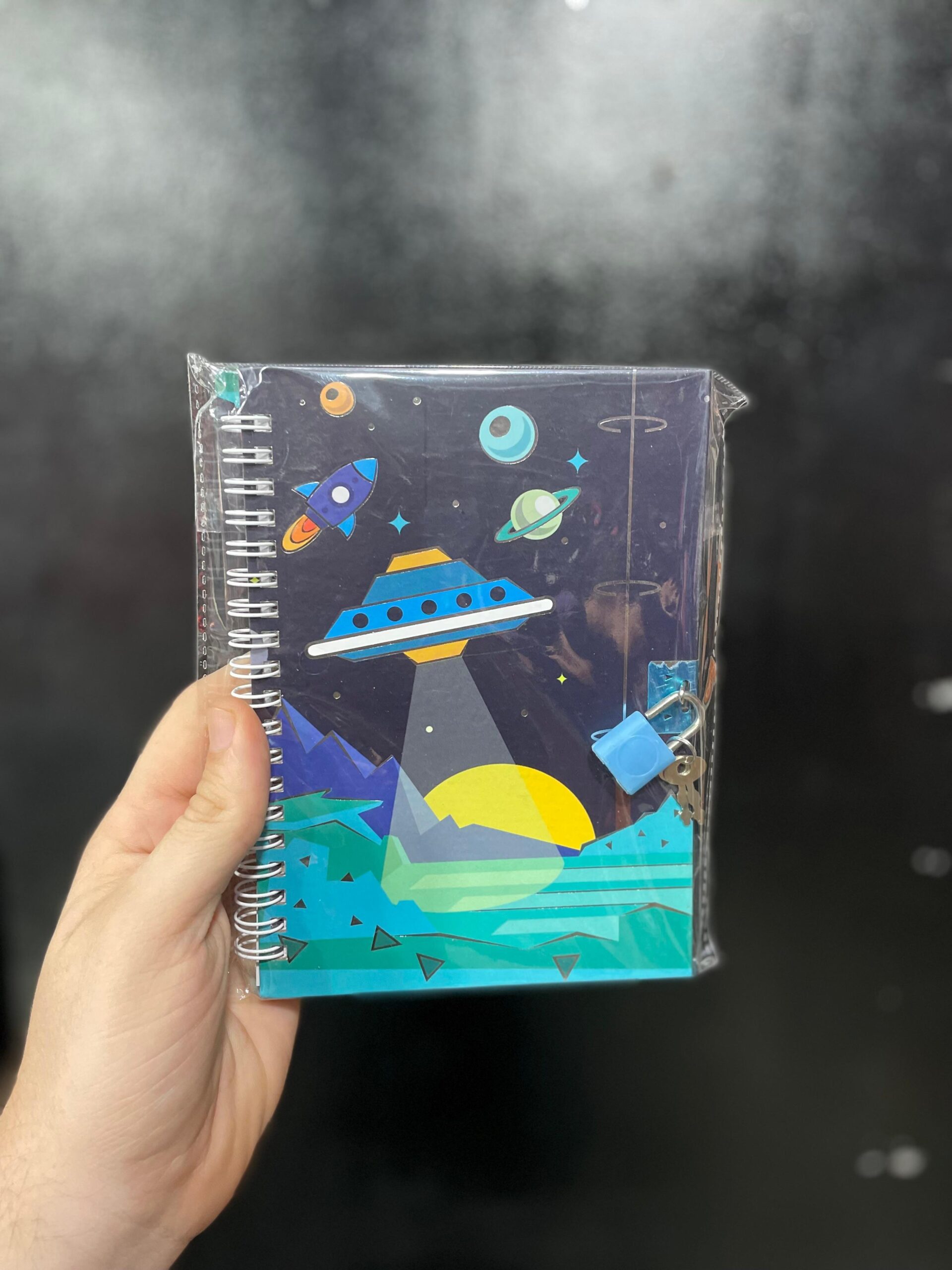 DIÁRIO MASCULINO PRETO COM VERDE ASTRONOMIA COM CADEADO 48 FOLHAS