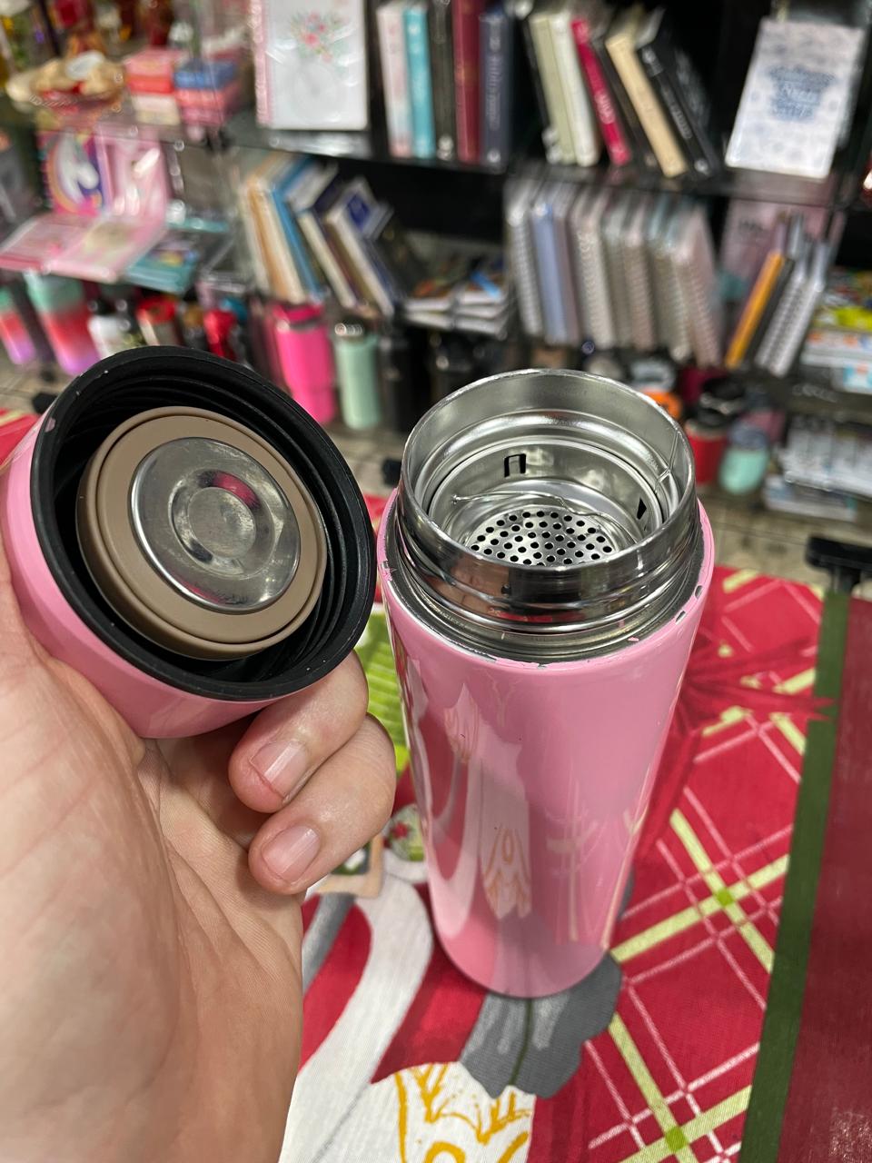 GARRAFA TÉRMICA ROSA COM INFUSOR E TERMÔMETRO DIGITAL 800ML