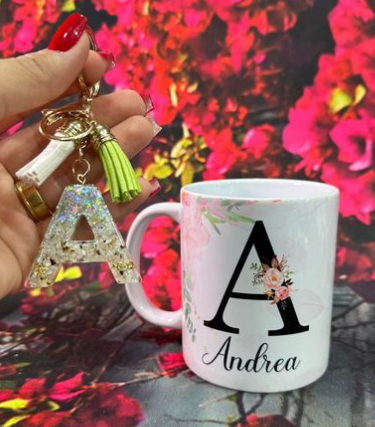 KIT CANECA E CHAVEIRO – ESCOLHA A LETRA INICIAL