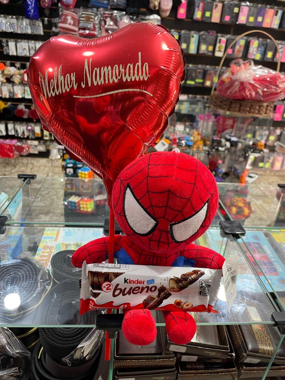 KIT COM PELÚCIA HOMEM ARANHA, BALÃO E CHOCOLATE
