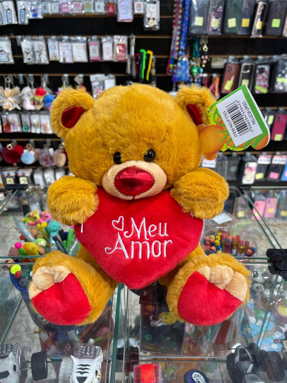 PELÚCIA URSO MARROM CORAÇÃO MEU AMOR 25CM
