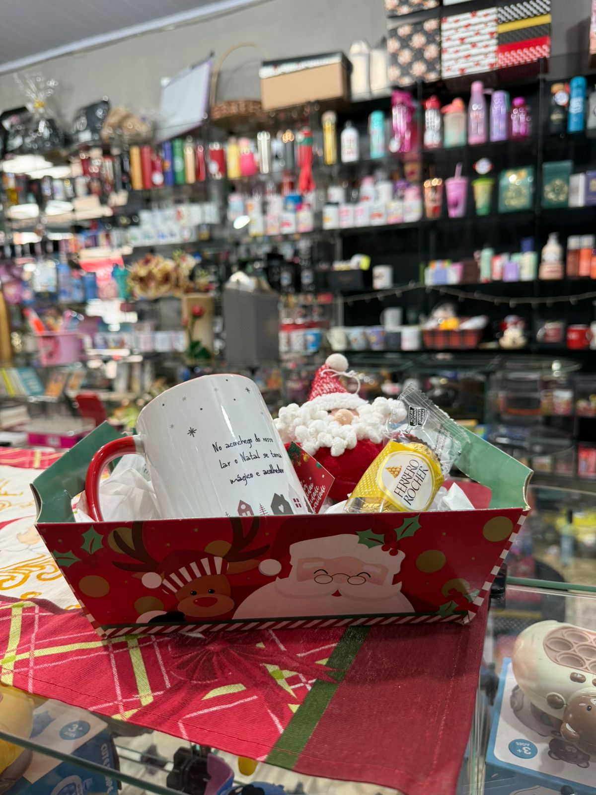 PRESENTE DE NATAL: CANECA + FERRERO + MINI PAPAI NOEL + CARTÃO DE NATAL