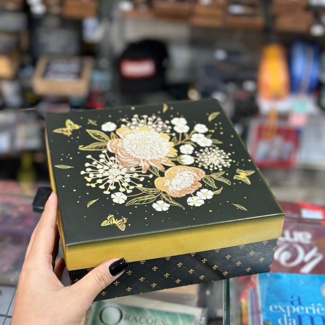 Seja o primeiro a avaliar “REF:21007 CAIXA QUADRADA FLORAL PRETA M 21x21x8,5CM”